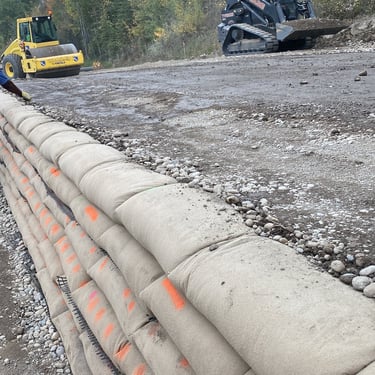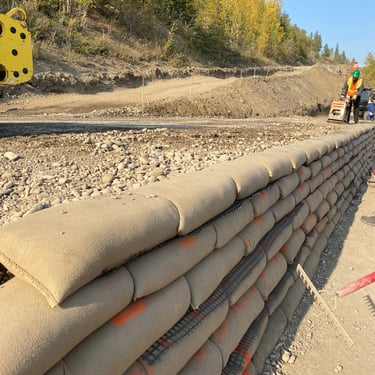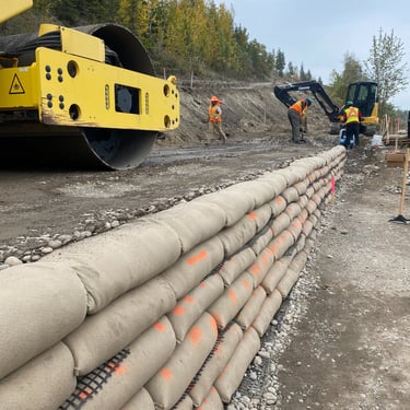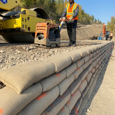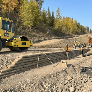 El proyecto consistió en la construcción de un muro de contención utilizando sistema de muro de suelo reforzado con geosintéticos (GRS). Este sistema integra refuerzo de geomembrana para fortalecer los sacos de arena, el muro y la superficie del camino, lo que da como resultado una estructura duradera y resistente, ofreciendo una solución efectiva y ecológica que respeta el entorno natural.