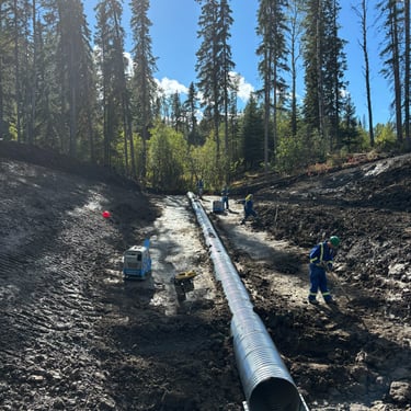 El proyecto consistió en la construcción de 23 drenajes para caminos industriales, con un total de 1.320 metros de tuberías de metal corrugado instaladas. Se emplearon técnicas constructivas avanzadas para asegurar un preciso posicionamiento y una compactación óptima, garantizando la durabilidad y eficiencia del sistema.